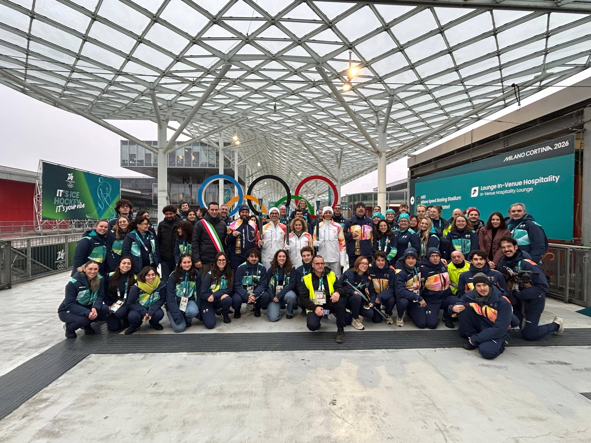 La fiaccola, accesa ad Atene, è stata accolta accanto alla pista di Speed Skating e a quella di hockey su ghiaccio, prima che continuasse il suo viaggio verso San Siro per la cerimonia di inaugurazione.