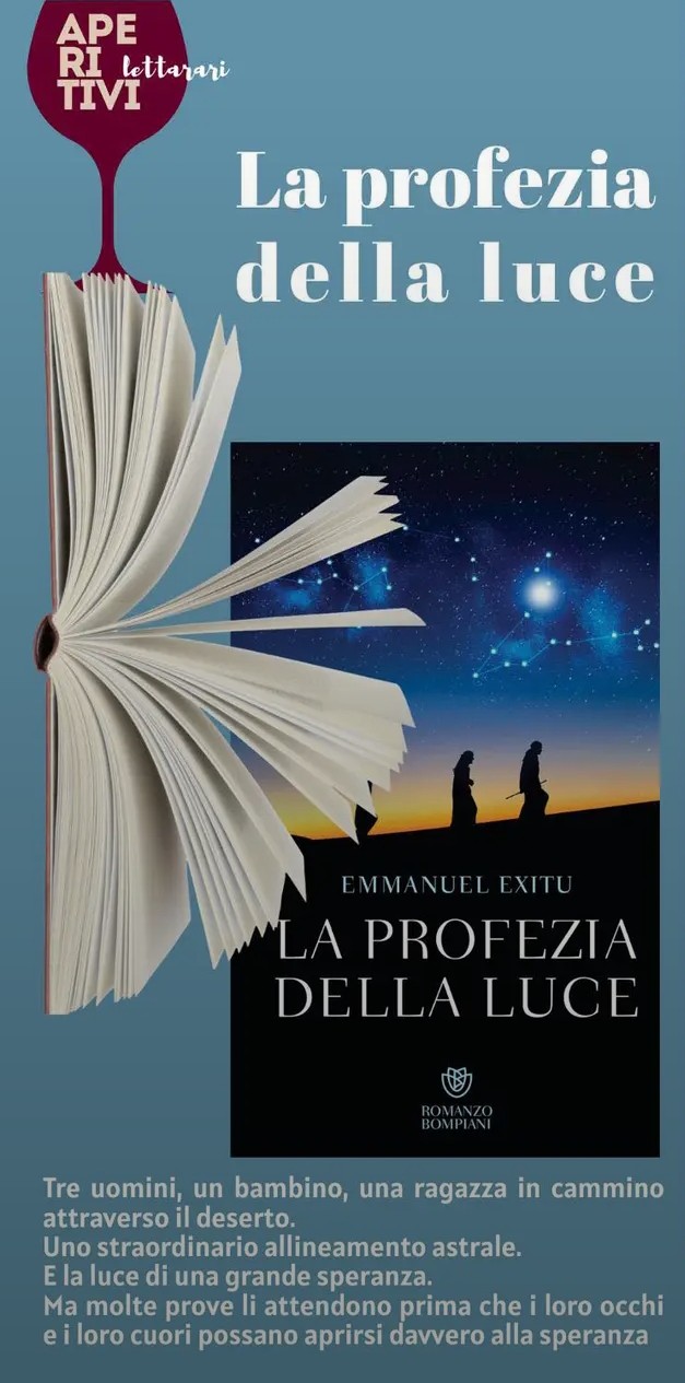 In un evento del ciclo Aperitivi Letterari organizzato dalla Associazione di Volontariato Vita e Destino presso l’Infopoint di Rho, Emmanuel Exitu presenta La Profezia di Luce, il suo nuovo libro in cui affronta la Natività in chiave originale, togliendo i Re Magi dal gesso del presepe e raccontandoli nella loro possibile realtà di esseri umani immersi in un tempo di caos e di attesa, regalandoci un sorprendente romanzo d’avventura e d’amore.