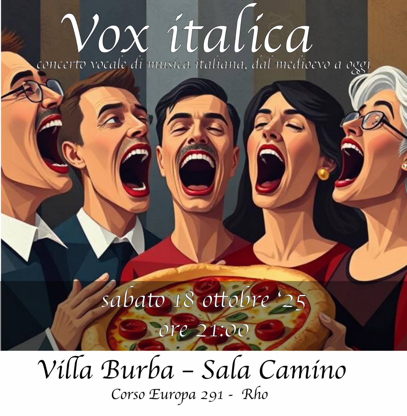 “Vox italica” è uno spettacolo dedicato alla storia della musica italiana. Il programma della serata prevede una rassegna di brani cantati a cappella: dai canti in latino e volgare del Medioevo fino alle hit del Novecento e primi anni 2000. L’interpretazione vocale e gli arrangiamenti corali, molti scritti dai Suonova, permettono di apprezzare il racconto in modo originale.